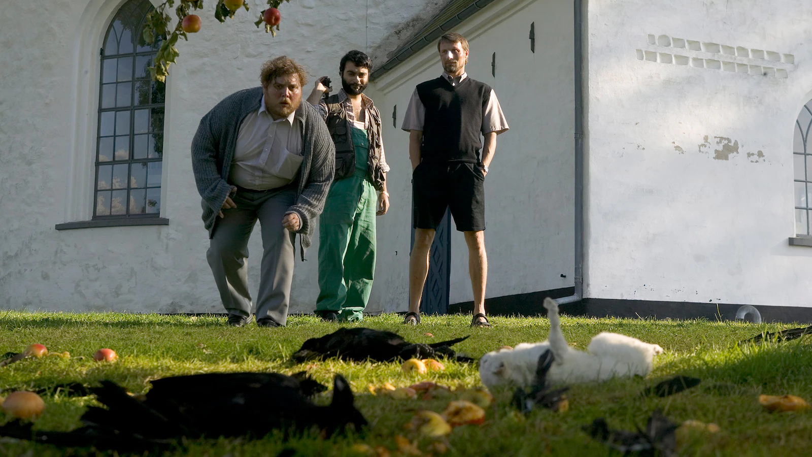 După eliberarea din închisoare, Adam, fost lider al unei grupări neo-naziste, e obligat să petreacă mai multe săptămâni în mijlocul unei mici comunități evlavioase păstorită de Ivan, un preot care crede cu tărie în bunătatea ființei umane. Pentru a-l putea considera reabilitat, Ivan îi cere lui Adam să-și fixeze un scop pentru răstimpul pe care-l au de petrecut împreună. În bătaie de joc, Adam alege să facă o plăcintă cu mere. Ivan e de acord, cu condiția ca merele să provină din pomul care crește în grădina bisericii.